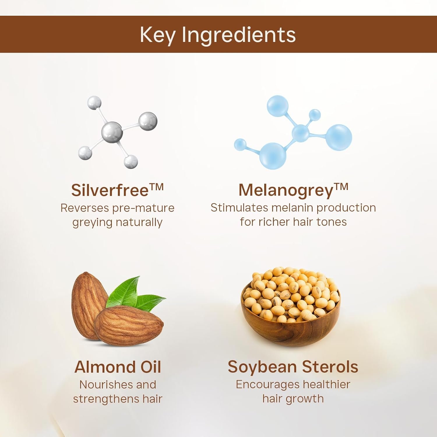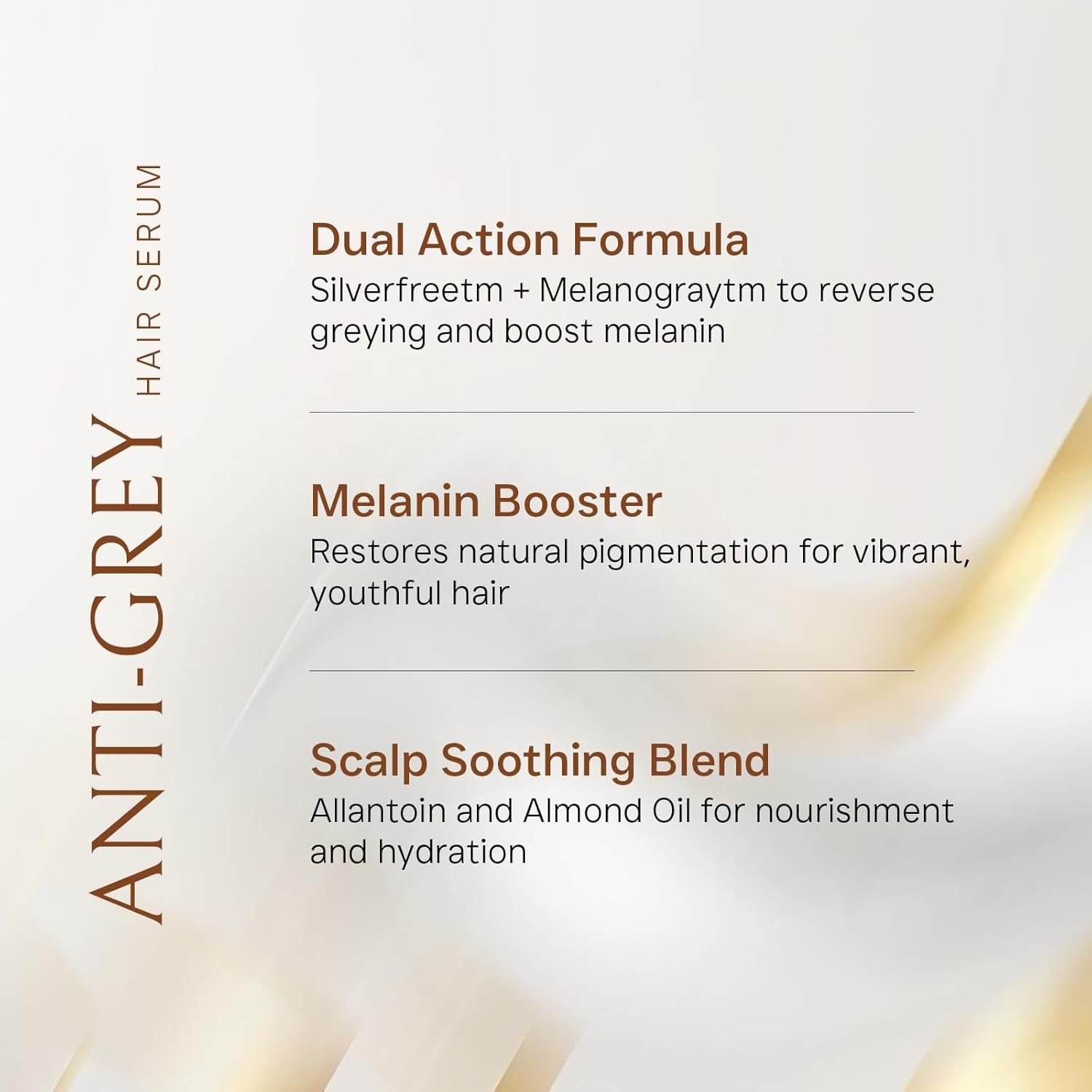 - Reverses Grey Hair Naturally: Advanced formula with 1.5% Silverfree and 2% Melanogrey actively boosts melanin production from the roots, helping restore your natural hair color without harsh dyes or chemicals.