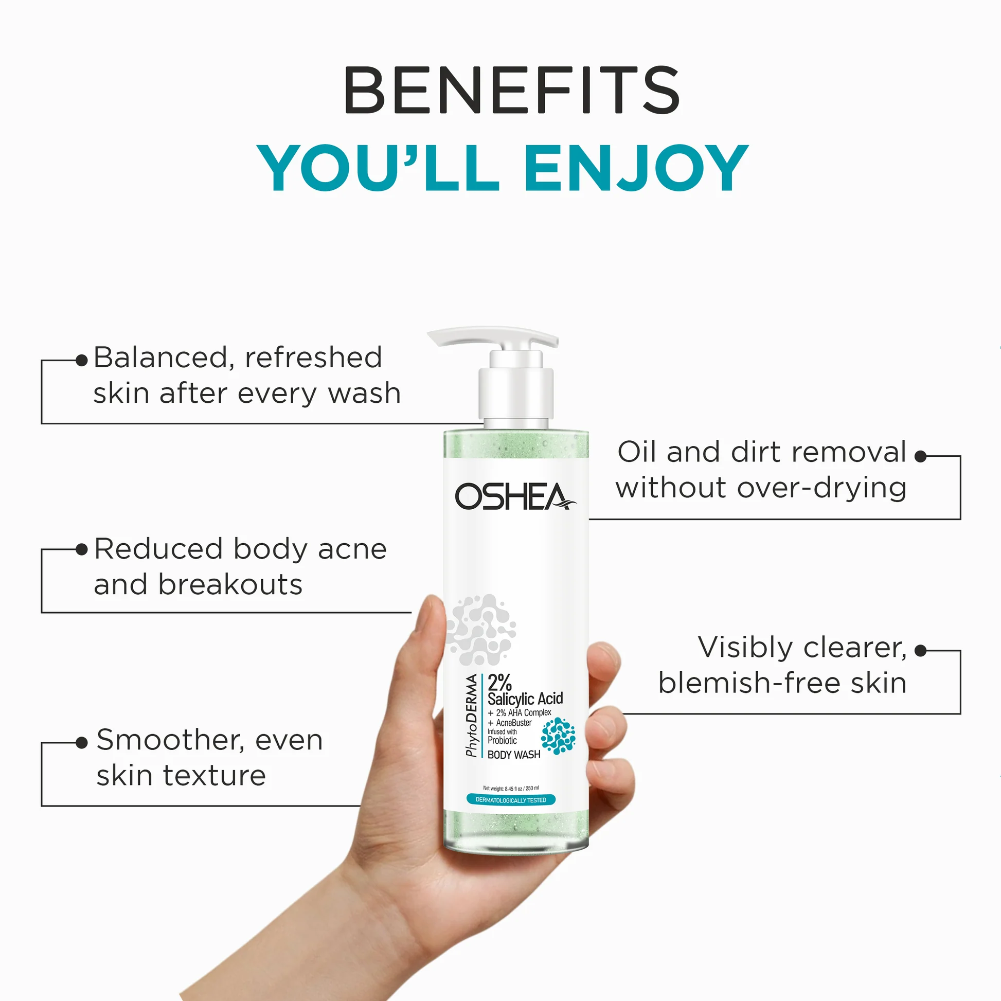 Why Choose Bodywash – 2% Salicylic Acid + 3% AHA Complex + AcneBuster Infused with Probiotic?