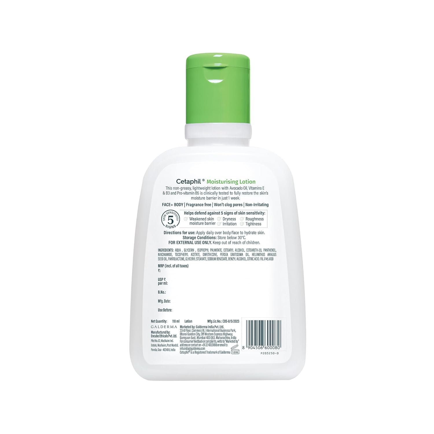 Cetaphil Moisturising Lotion 118 ml for Dry to Normal & Sensitive Skin | 48H Hydration with Niacinamide, Panthenol & Glycerin | Fragrance-Free, Non-Greasy, Dermatologist Recommended, For Face and BodyCetaphil Moisturising Lotion 118 ml for Dry to Normal & Sensitive Skin | 48H Hydration with Niacinamide, Panthenol & Glycerin | Fragrance-Free, Non-Greasy, Dermatologist Recommended, For Face and Body