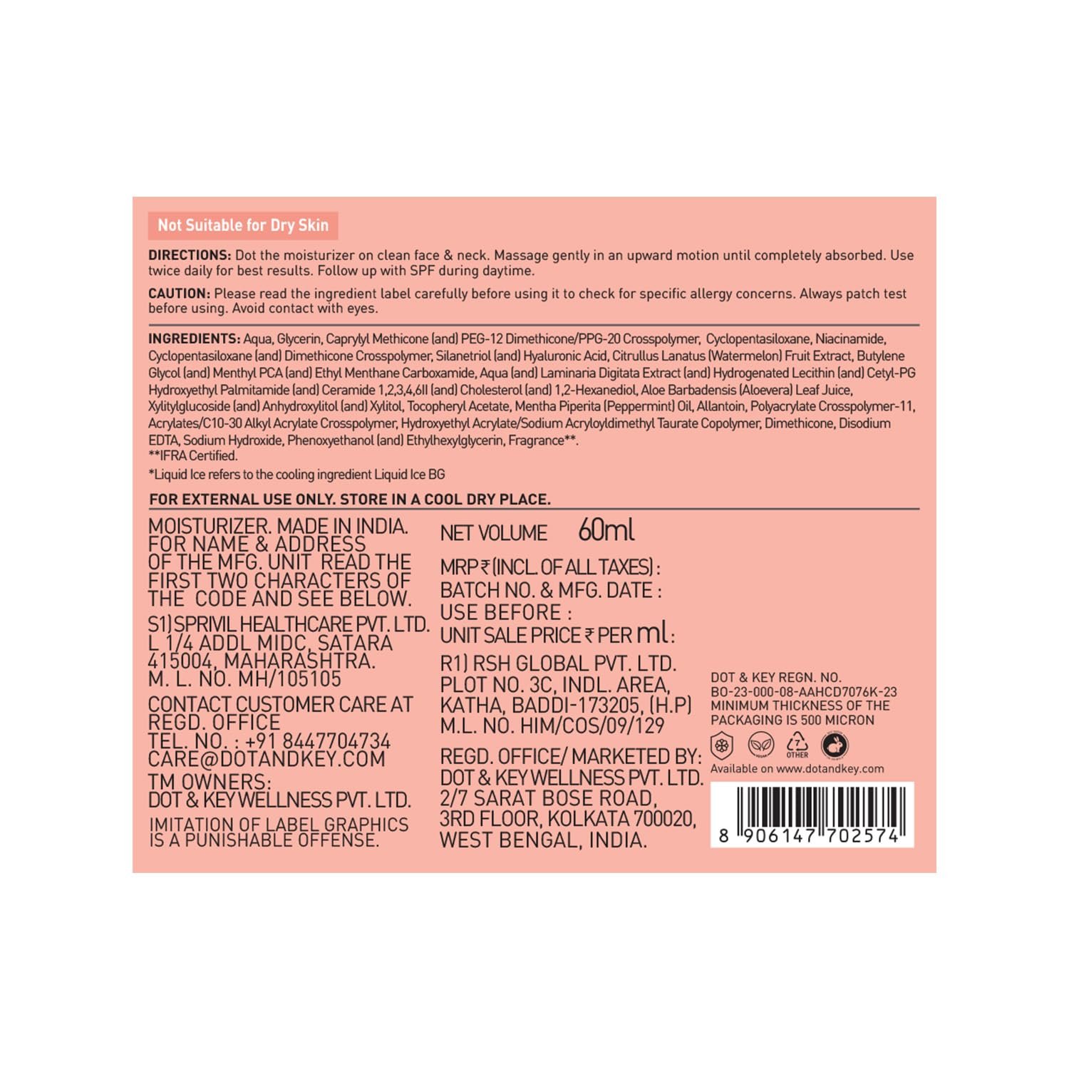 Dot & Key Watermelon Cooling Icy Gel Moisturizer | Instantly Cools Skin, Hyaluronic & Niacinamide | Controls Excess Oil, Boosts Radianc | Refreshes & Soothes Skin, Non-sticky & Non-greasy