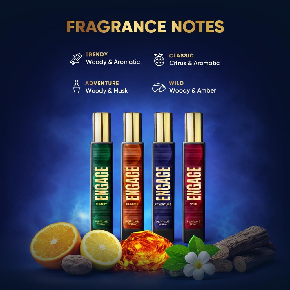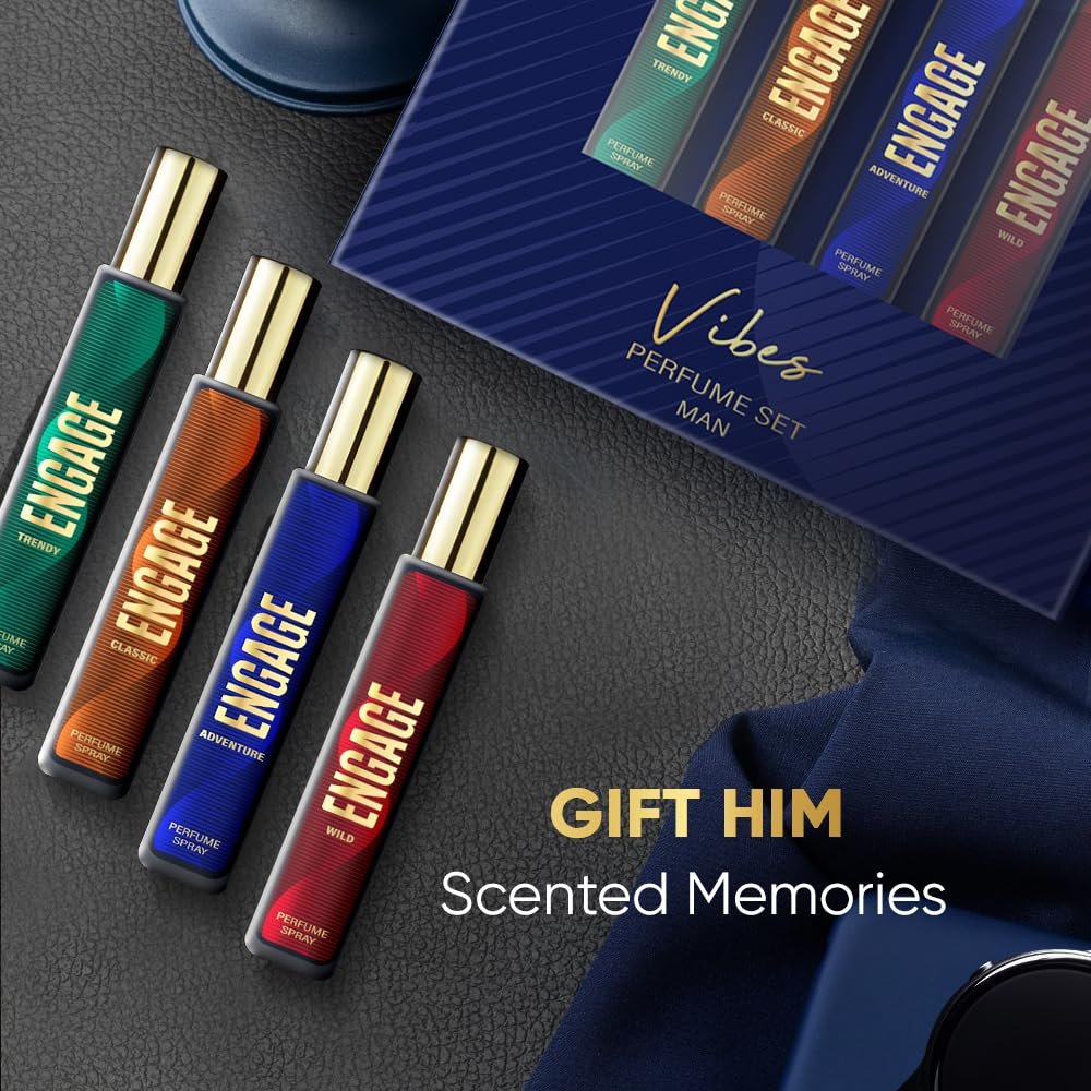 Engage Vibes Perfume Gift Set for Men, 100ml, Long Lasting Eau De Parfum, Travel Size Perfume Combo 25ml x 4