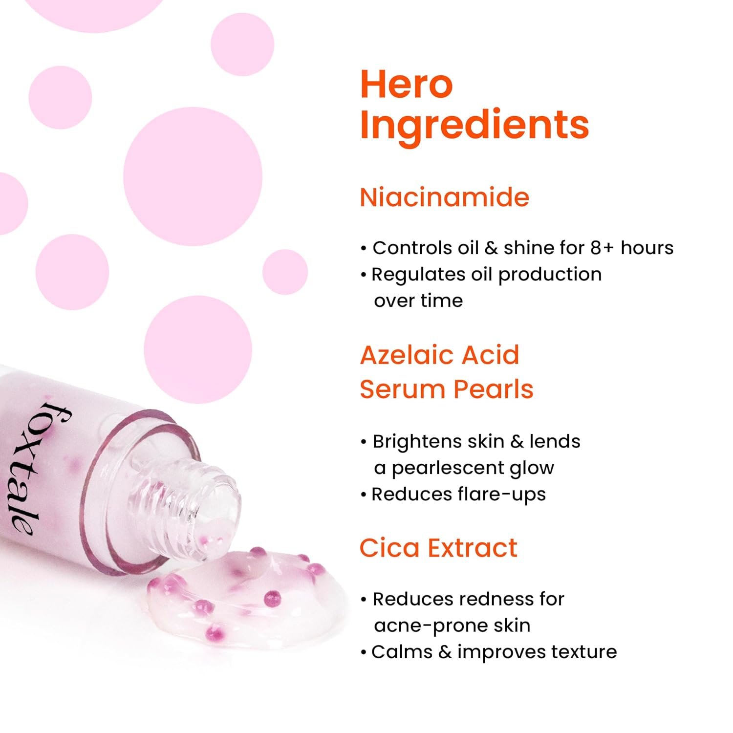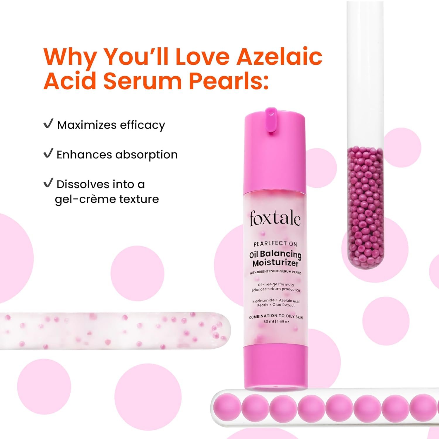 Foxtale Oil-Balancing Gel Moisturizer with Niacinamide, Azelaic Acid Pearls & Cica, 8hr Shine-Free Hydration, Lightweight, Sebum Control, For Oily & Acne-Prone Skin, 50 ml