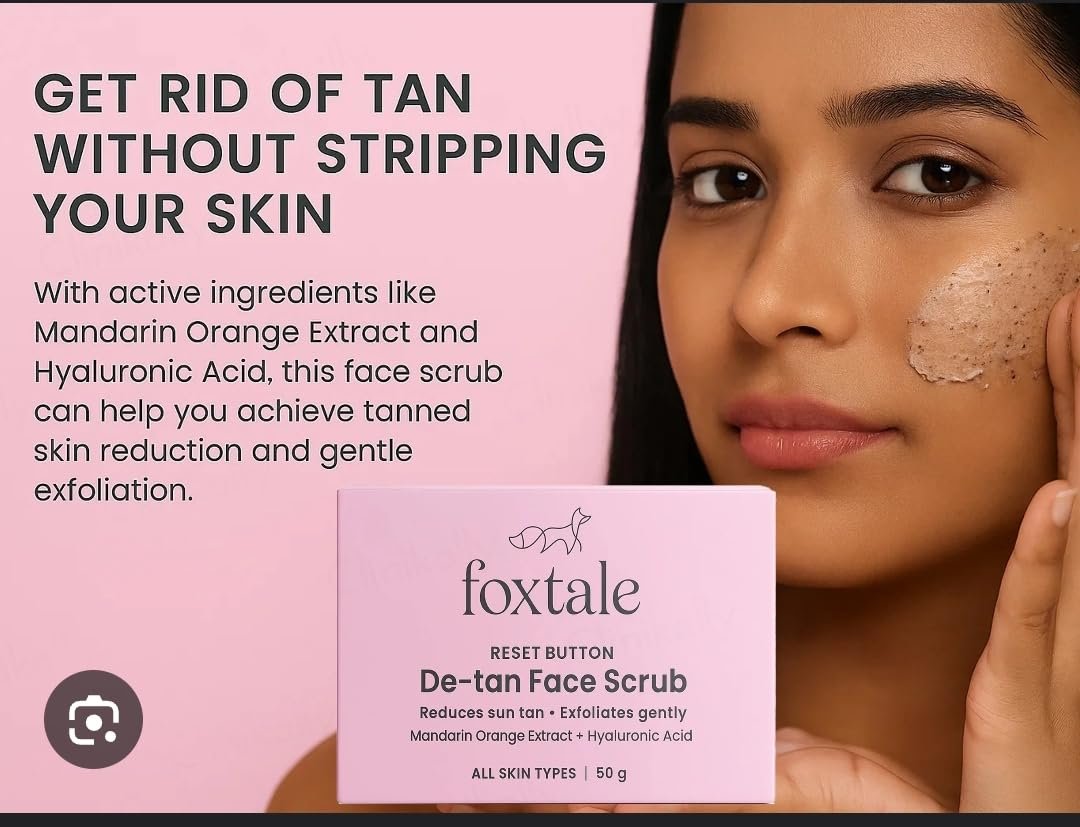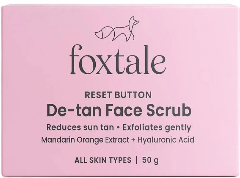 FOXTALE ORIGINAL RESET BUTTON DE TAN FACE SCRUB REDUCES SUN TAN EXFOLIATES GENTLY ALL SKIN TYPES