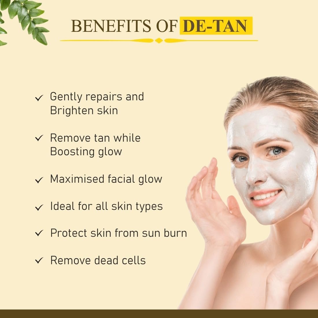 - Powerful De-Tan Formula: Gently removes tan lines, sunburn spots, and pigmentation.
