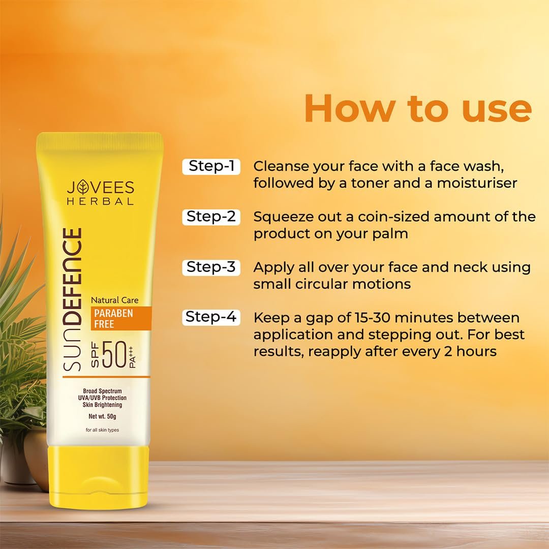 Jovees Herbal Sun Defence Sunscreen SPF 50 PA+++ Broad Spectrum For All Skin | Protection From UVA/UVB & Sun Damaged | Lightweight, Non Greasy & Quick Absorption Sunscreen For Men/Women 50gJovees Herbal Sun Defence Sunscreen SPF 50 PA+++ Broad Spectrum For All Skin | Protection From UVA/UVB & Sun Damaged | Lightweight, Non Greasy & Quick Absorption Sunscreen For Men/Women 50g