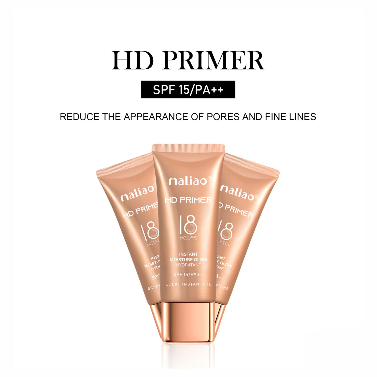 Achieve a flawless, glowing complexion with Maliao HD Primer. This instant moisturizing primer hydrates your skin, imparting a dewy, dewy glow that lasts all day. Formulated with SPF 15/PA++, it protects your skin from harmful UV rays, making it perfect for everyday wear. The high-definition finish creates a smooth base for makeup, ensuring your foundation applies evenly and stays fresh for hours. This primer also works to minimize the appearance of pores and fine lines, giving you a seamless, airbrushed look. Enhance your makeup routine with Maliao HD Primer and enjoy a hydrated, radiant and protected complexion.