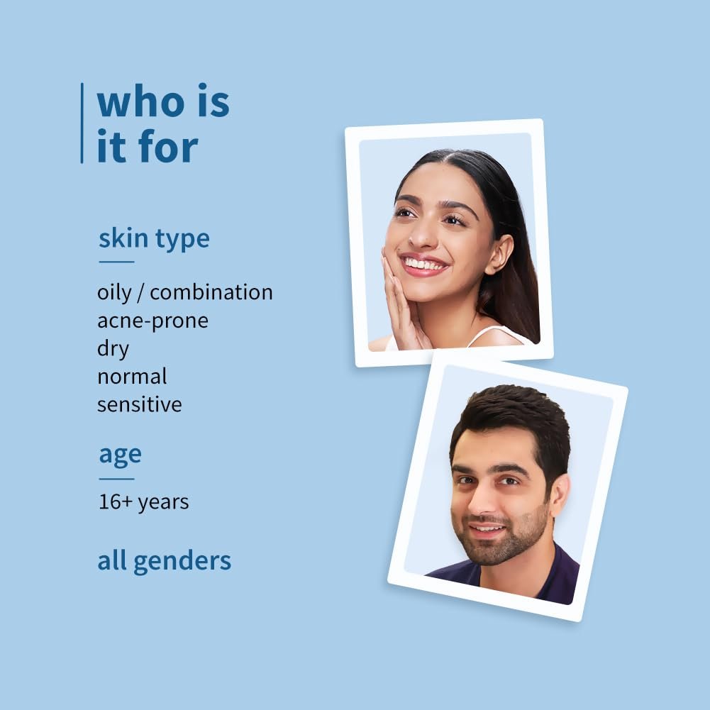 • Gentle, Non Drying Formula for All Skin Types: The formula is dermat-tested, sulfate-free, paraben-free, and safe for daily use. It can be used as a face wash for oily and acne-prone skin, while being suitable for other skin types as well. Its gel-based texture, infused with niacinamide, makes it one of the best face washes for oily skin as it helps control oil and cleans your skin effectively without any dryness.