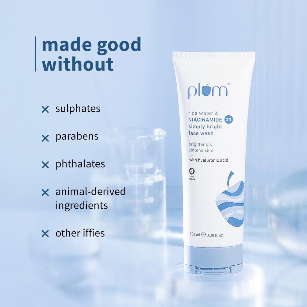 Plum Rice Water & 2% Niacinamide Face Wash 100ml | Brightens Skin, Helps Fade Blemishes | Softens & Smoothens Skin | Gentle & Non-Drying | Women & Men | 100% VeganPlum Rice Water & 2% Niacinamide Face Wash 100ml | Brightens Skin, Helps Fade Blemishes | Softens & Smoothens Skin | Gentle & Non-Drying | Women & Men | 100% Vegan