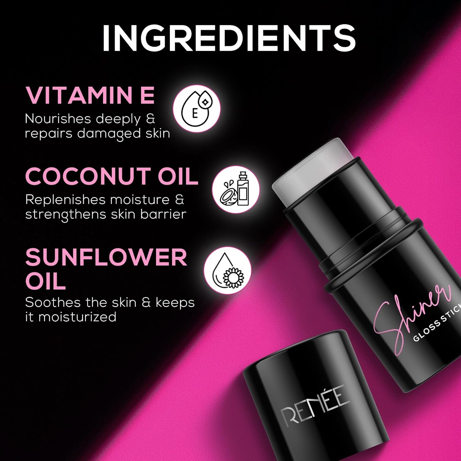 - Adds instant glossy shine: Experience the transformative power of RENEE Shiner Gloss Stick, designed to deliver an immediate burst of radiant brilliance to your Skin.