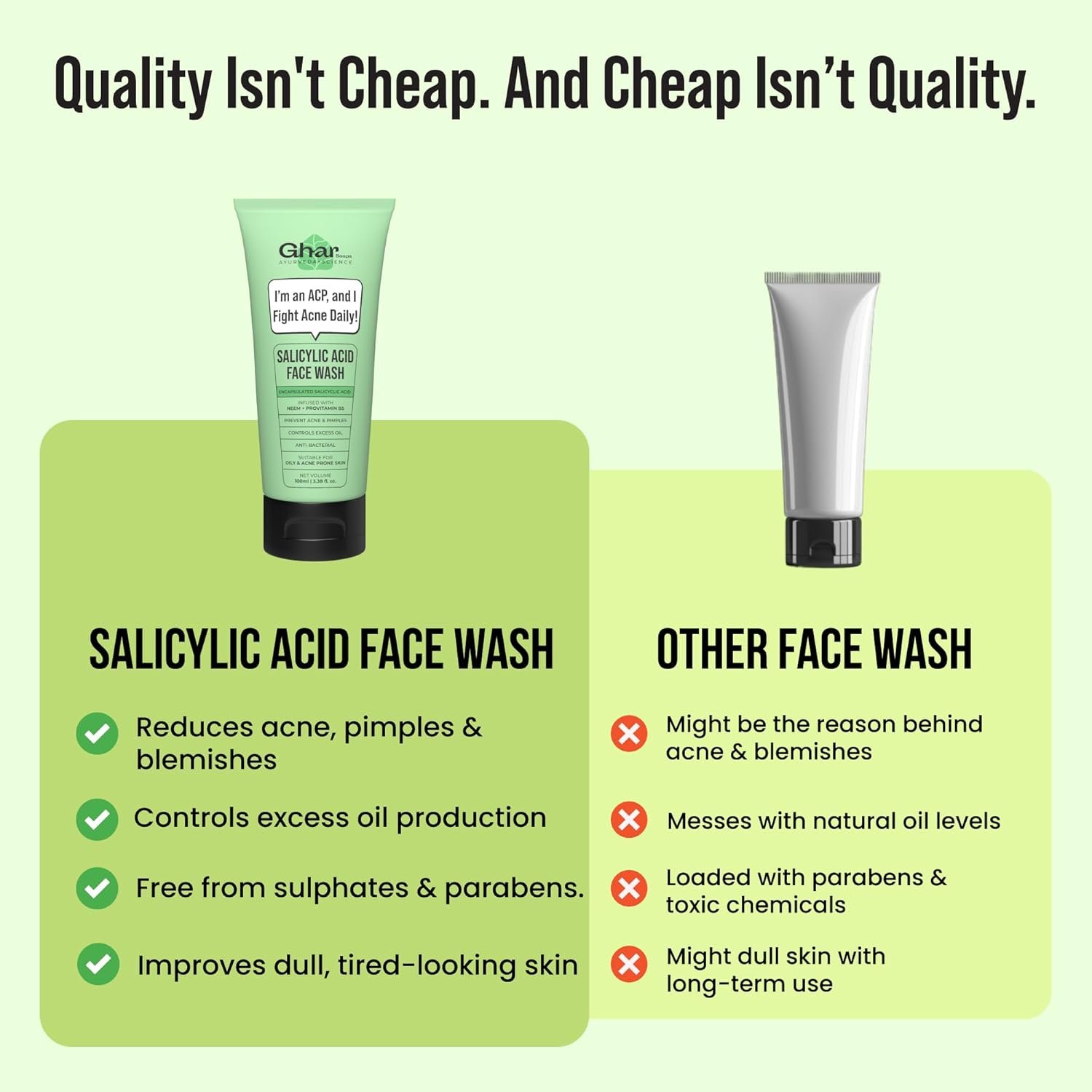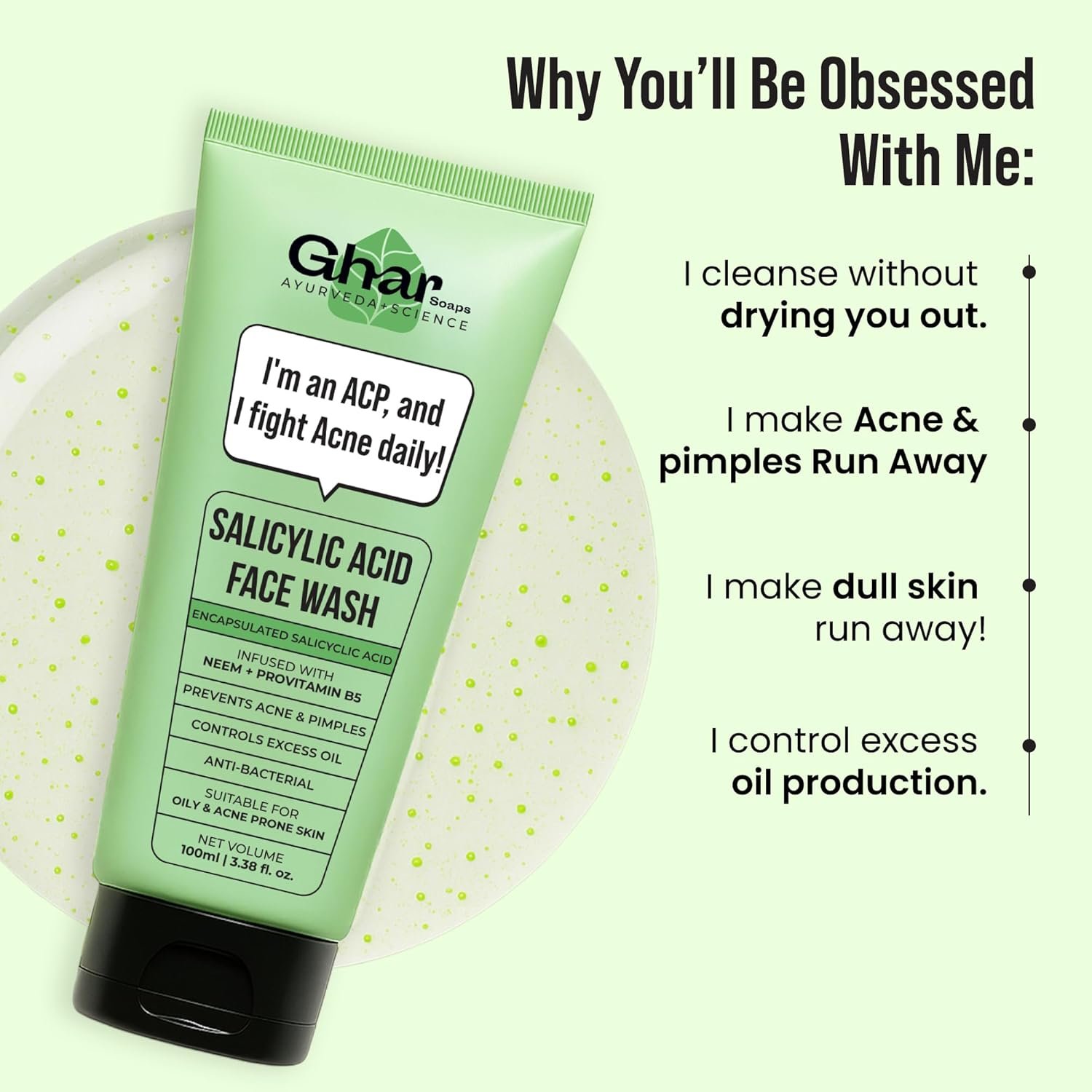 - Your ACP – Acne Clearing Partner – Powered by 2% Salicylic Acid, this face wash targets acne, unclogs pores, and keeps breakouts under control.
