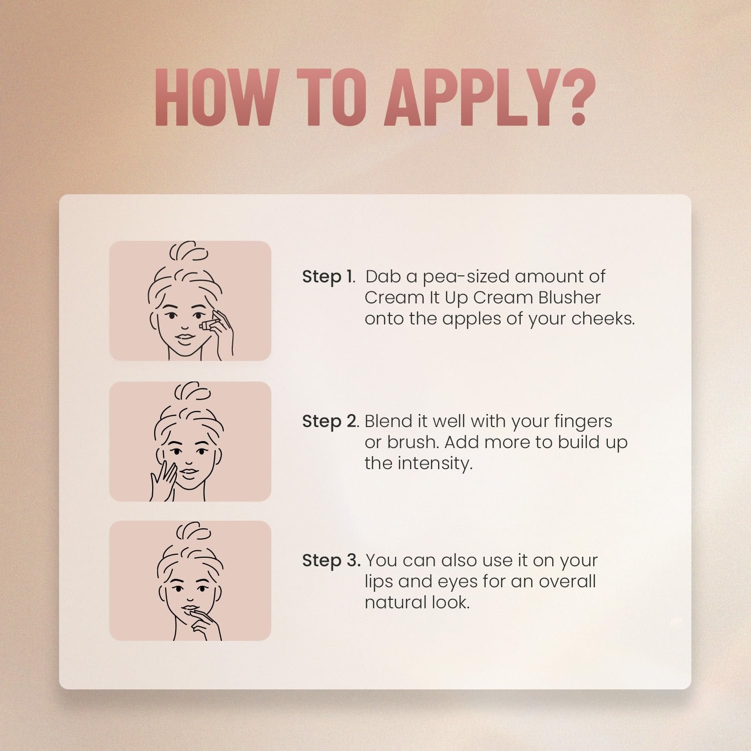 • Cream Blusher with Intense Pigmentation: Experience vibrant and rich hues that enhance your natural beauty with the “Cream it Up” Blusher.