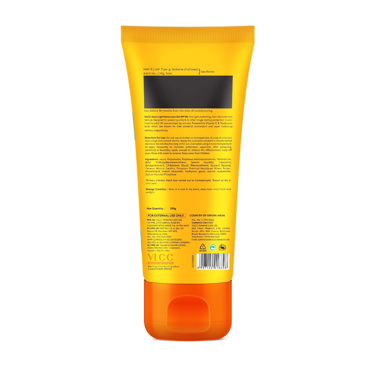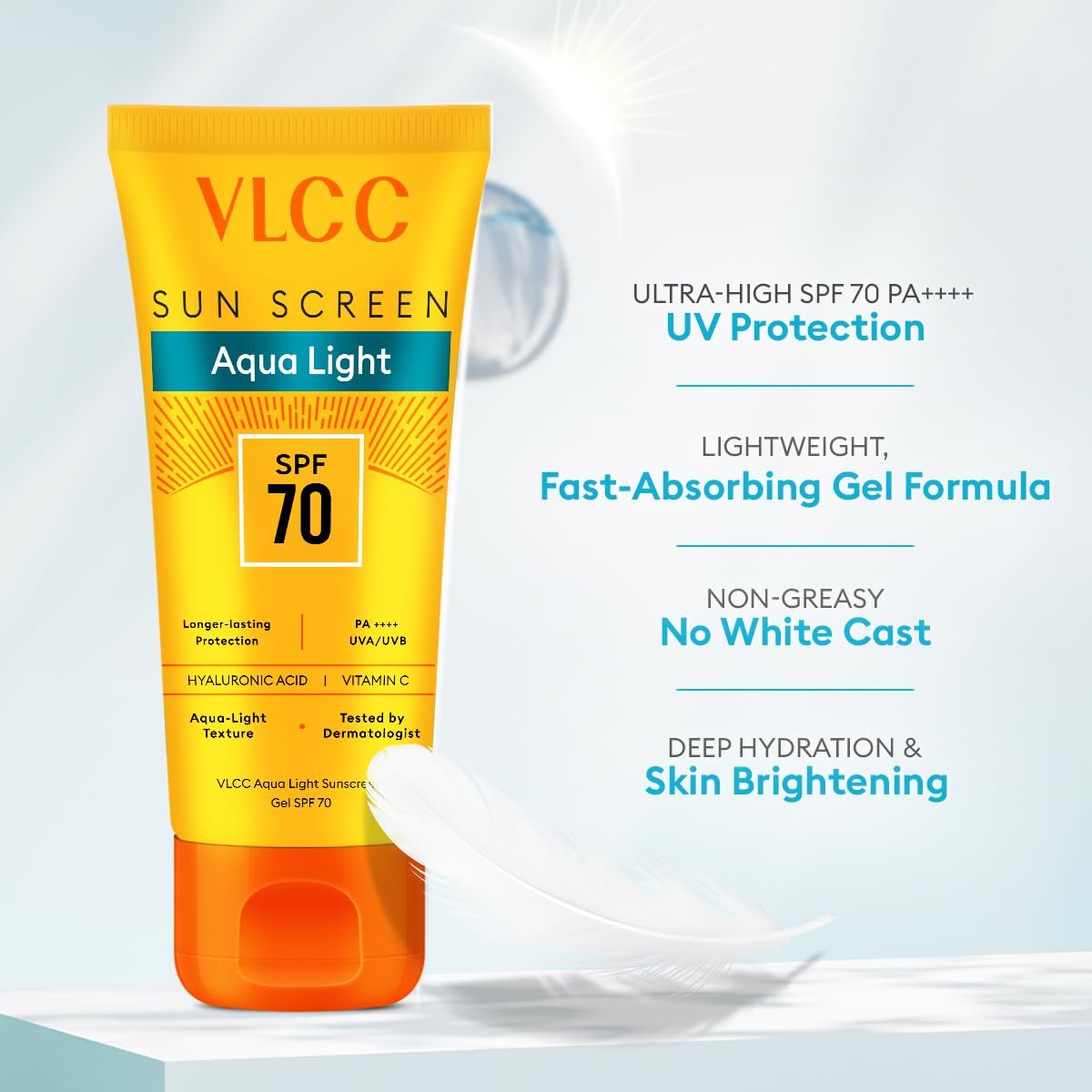 VLCC Aqua Light Sunscreen Gel SPF 70 PA++++ | Ultra-High UV Protection For All Skin Type | No White Cast | Non-Greasy, Fast-Absorbing | Hyaluronic Acid & Vitamin C | Sweat & Humidity Resistant - 100gVLCC Aqua Light Sunscreen Gel SPF 70 PA++++ | Ultra-High UV Protection For All Skin Type | No White Cast | Non-Greasy, Fast-Absorbing | Hyaluronic Acid & Vitamin C | Sweat & Humidity Resistant – 100g